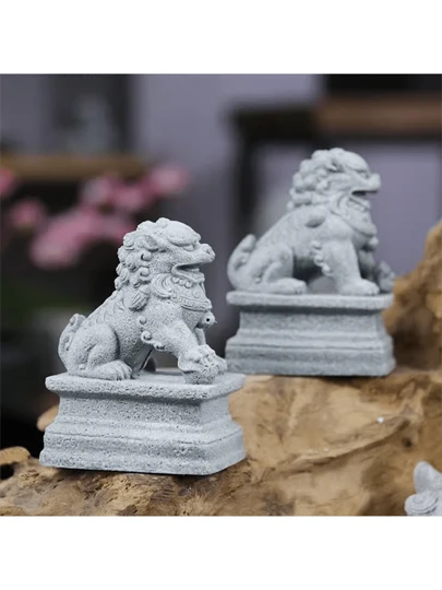 1pair/2pcs Simulated Northern Lion Decoration, Made Of Sandstone, For Home Decoration Or Aquarium Landscape In Zen Tea Room, Study Or Garden - Light Grey - View 1
