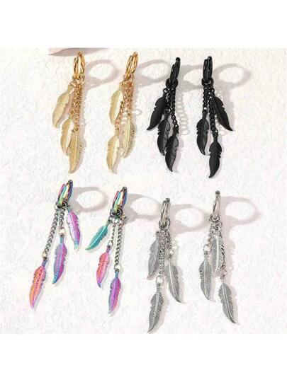 1pair Elegant Minimalist Stainless Steel 18K Gold Plated Colorful Feather Earrings, Women Party Jewelry - Feather - View 10