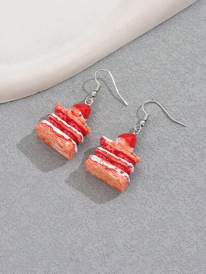 1pair European And American Style Casual Layered Cake, Fruit, Simple, Pink Heart-Shaped, Ladies' Holiday Wind Earrings - Multicolor - View 6