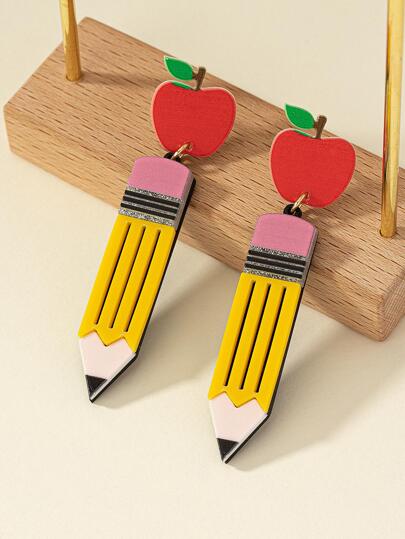 1pair Fashionable Apple Decor Pencil Drop Earrings For Women For Daily Decoration - Multicolor - View 1