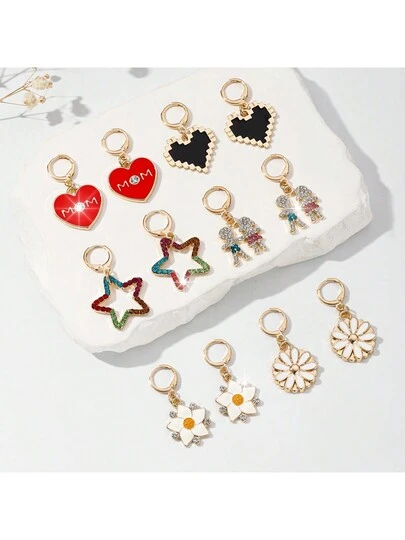 1pair Fashionable European & American Style Alloy Gold Plated Heart Shaped, Flower, Star, Cartoon Character, Etc. Water Drop Rhinestone Inlayed Ladies' Simple Dangle Earrings - Gold - View 9