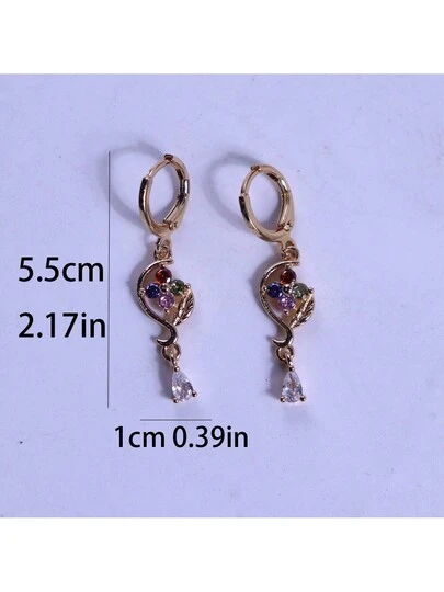 1pair Fashionable Luxury & Delicate Five-Color Zirconia Flower & Water Drop Shaped Pendant Earrings Suitable For Women's Daily Wear, Festival, Birthday Gift. Brand New & , No Fading. - Yellow Gold - View 9