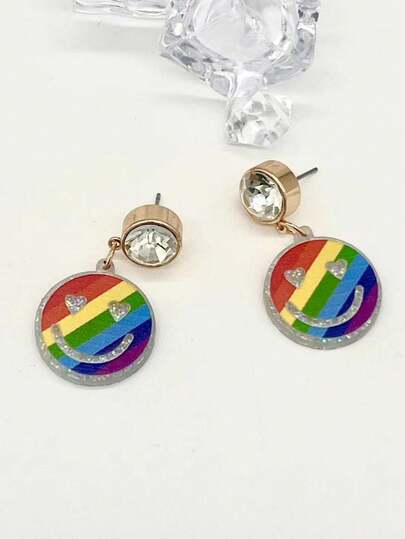 1pair Fashionable Minimalist Acrylic Material Smiling Face Shape Drop Earrings - Multicolor - View 1