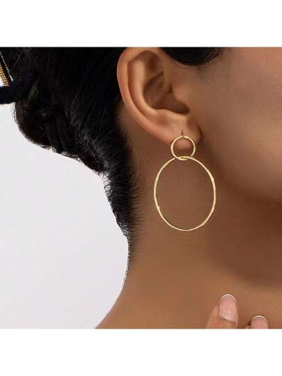 1pair Geometric Creative Shape Earrings Made Of Alloy, Elegant Style, Unique Statement For Women/Girls, Perfect Gift - Simple Design Hoop Earrings - View 1