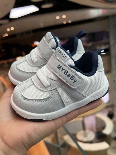 1pair Infant Boys' Fashionable Breathable Mesh Outdoor Casual Sneakers, Non-Slip Soft Sole Baby Shoes, Suitable For All Seasons - Grey - View 1