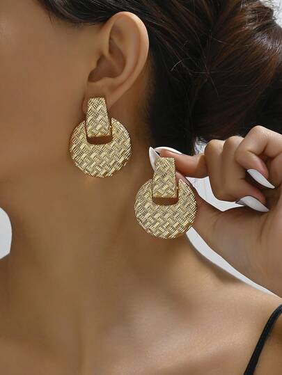 1pair Japan-Korean Style Printed High-Grade Heart Shaped Striped Diamond & Multi-Angle Star Shaped Earrings, Suitable For Daily Wear By Women - Golden a - View 12