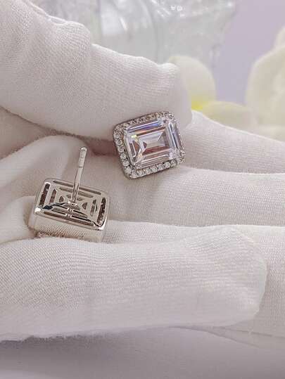 1pair Light Luxury Style Inlaid Earrings - Silver - View 1