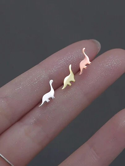 BALMORA 1pair Minimalist & Unique S925 Sterling Silver Cute Little Dinosaur Ear Studs For Girl/Women Daily Wear Birthday Gift - Dinosaur - View 12