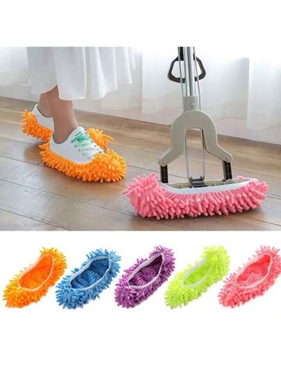1pair Multifunctional Floor Dust Cleaning Mop Slippers, Slouchy Mop Shoes, Detachable And Washable Mop Head For Floor Cleaning - Multicolor - View 1