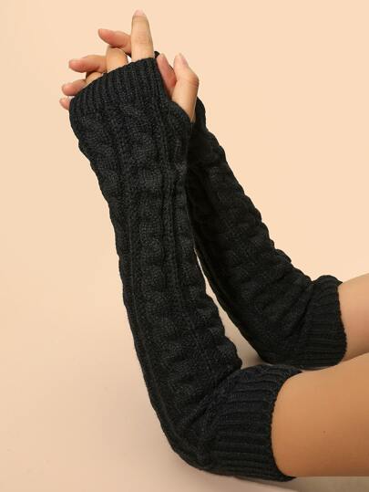 1pair Of Solid Long Winter Fingerless Gloves - Black - View 1