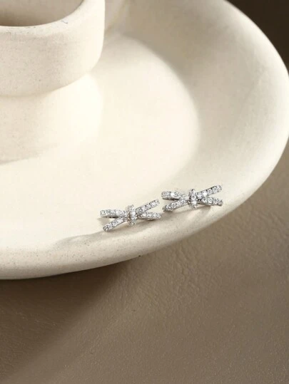 1 đôi S925 Bạc nguyên chất Hoa tai , Nhỏ bé Thiết kế độc nhất Bowknot Với Zirconia , Thời trang đơn giản Thanh lịch Tai Trụ Đối với phụ nữ , Hoàn hảo Qủa tặng Đối với Bạn gái , Bạn