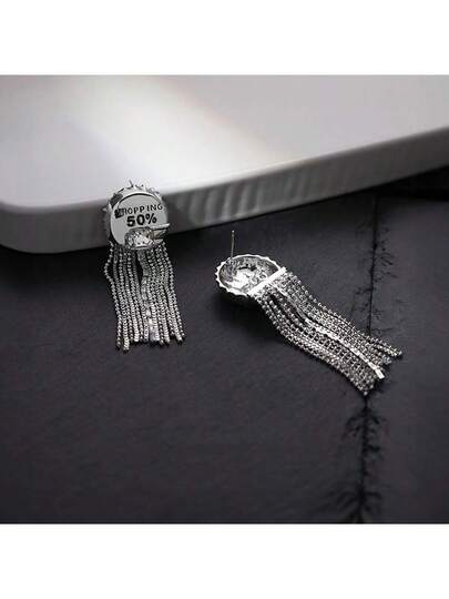 1pair Wine -Shaped Tassel Earrings With 925 Silver Needle, European & American Style, Unisex, Personalized, Ear Accessories - Great For Couples And Festivals Gifts - Silver - View 1