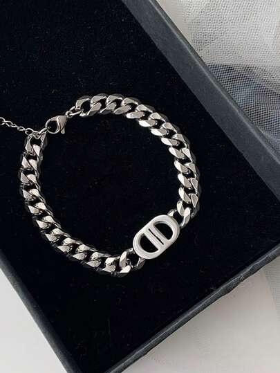 1 chiếc vòng tay nam bằng thép không gỉ thiết kế mắt xích kiểu thời trang, thích hợp để đeo hàng ngày.