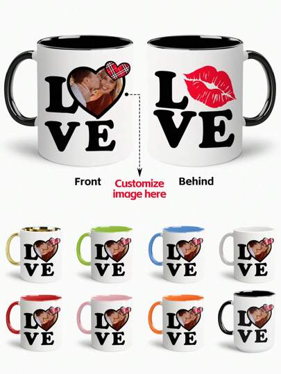 1pc,Personalized Mug,Customized Coffee Mug For Lovers Personalized Add Your Own Photo Ceramic Mug Gift For Your Love On Valentine's Day Birdthday.Costom Your Coffee Mug With Photo, Husband Gift For Wife, Boyfriend Gift For Girlfriend, Best Holiday Gift For Him Her - Multicolor - View 1