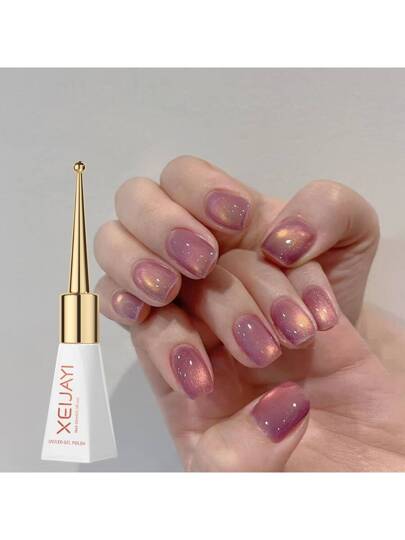 1pc 10ml Rose Majesty Cat Eye Gel Nail Polish, UV Gel Nail Polish, Glitter Magnetic Nail Art Varnish, UV/LED Lamp Needed, For Women Home Salon Nail Art DIY-No Magnetic Stick Included - Pink - View 1