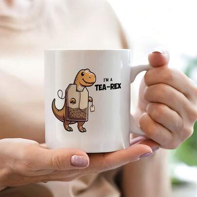 1pc 11oz Ceramic Mug. Dinosaur Ceramic Coffee Mug With A Cute Tyrannosaurus Rex Pattern. Patterned Coffee Mug. Suitable For Any Occasion. Perfect Gifts For Family And Friends On Holidays Or Birthdays. Beautiful And Practical, Meeting Daily Hydration Needs. - Multicolor - View 1