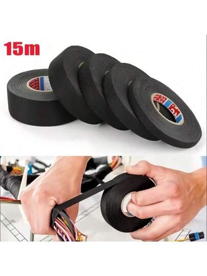 1pc 15m Heat Resistant, Noise Reducing, Flame Retardant Adhesive Tape, For Automotive Cable Harness Protection, Width 9/15/19/25mm - 15 M Length - View 1