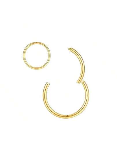 1pc 16g 316l Stainless Steel Allergy-Free Body Piercing Nose Ring, Lips Ring Or Spiral Cartilage Rook Earring - Gold - View 1
