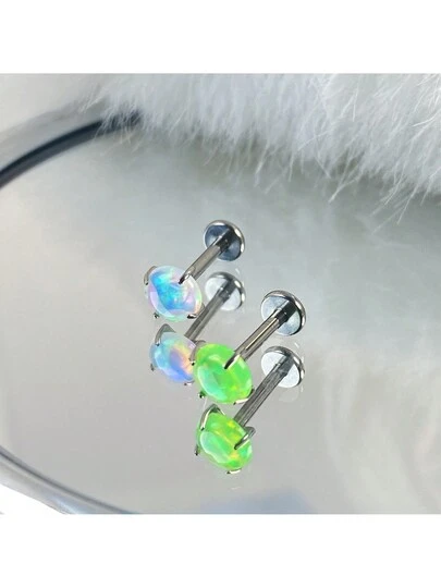 1pc 16g Flat Back Jelly Opal Lip Stud/Earring/Tragus Piercing Jewelry Made Of F136 Titanium Alloy, Suitable For Women's Daily Wear, Available In 8/10/12mm - Green - View 1