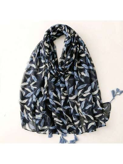 1pc 180*90cm All Seasons Outdoor Windproof Shawl, Sunscreen Beach Towel, Fashionable Women's Scarf, Printed Rectangular Soft And Warm Neck Wrap, Khaki, Green, Navy Blue - Black - View 5