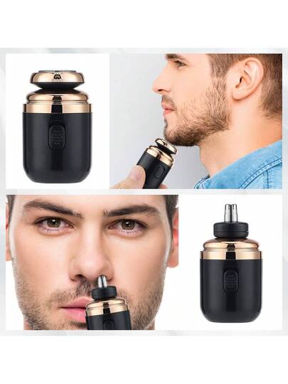 1pc 2-In-1 Electric Shaver And Nose Hair Trimmer, Compact Portable Hair Grooming Device, USB Rechargeable Men's Razor, For Travel, Outdoor, Home Use, With Type-C Charging Cable And Cleaning Brush - Multicolor - View 1