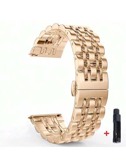 1pc 20mm/22mm Stainless Steel Metal Replacement Strap Compatible With Samsung Galaxy Watch 3 4 5 45mm, Gear S3 46mm 42mm, Active2 40 44mm, Garmin, Huawei Watch, Amazfit GTS - Adjustable Smart Watch Band Accessory - Rose Gold - View 1