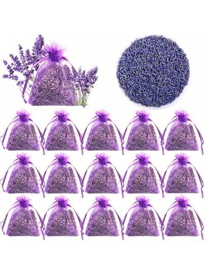 1pc/20pcs Pack Lavender Purple Granule Mesh Bag, Natural Dried Plant Loose Bulk, Suitable For Indoor Bedroom Wardrobe Car Fragrance Bag, Sachet, Pillow - For Handmade Soap, Candle, Aromatherapy Crafting And Decoration - Purple - View 1