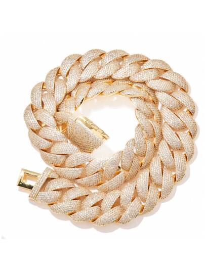1pc 24mm Fully Iced Out Solid Cuban Link Necklace, Oversized Personalized Necklace & Bracelet For Men, Hip Hop Style - 24mm - View 1