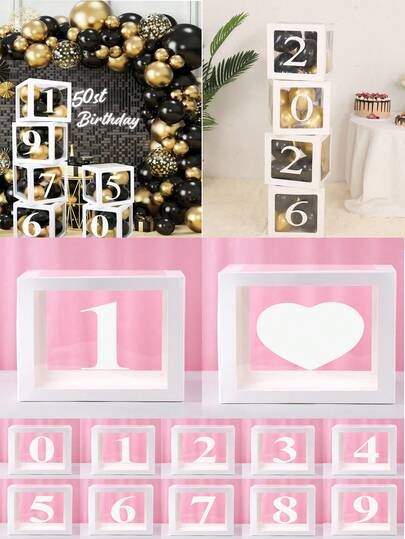 1pc 25cm White Transparent Box With Numbers 1-9, Birthday Decoration Balloon Storage Box, Wedding Decoration Balloon Box, 1st Birthday Gift Box, 18/30/40/50/60 Birthday Party Decor, Baby Shower Party Decor, 2026 New Year Party Decor, Transparent Filled Box Party Gift Box, Birthday Gift Elegant Box, Happy Birthday Decoration, Party Background Decor, Balloon Accessories - Box + Number - View 17