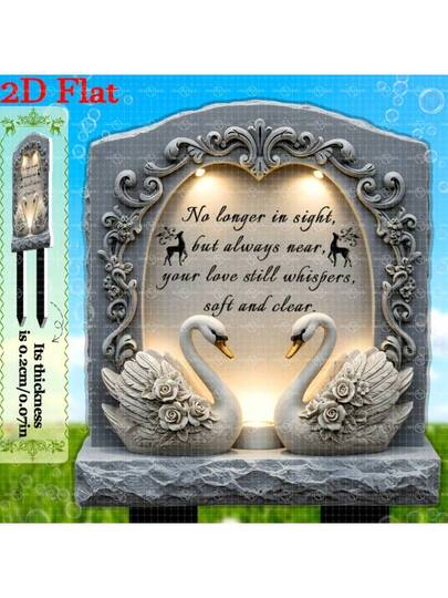 1pc 2D Flat, Classic Double Swan Memorial Plaque, 25x14cm Acrylic Garden Fence, Ground Installation, Weather-Resistant Outdoor Decor, No Electricity Needed, Ideal Gift To Remember Loved Ones, Memorial Garden Decor | Touching Information Decor | Detailed Design, Memorial Garden Decor - Multicolor - View 1