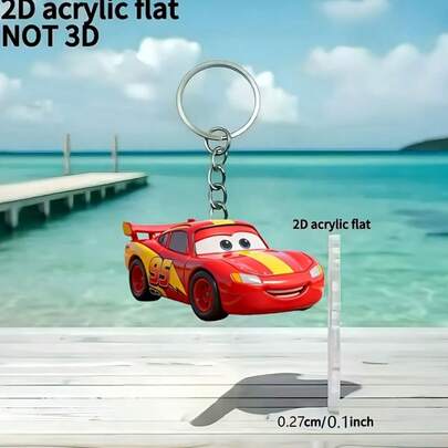 1pc 2D Flat Disney Element 2D Acrylic Lightning Car Keychain, Holiday Gift, Decoration, Suitable For Birthday Party, Christmas, Thanksgiving, Valentine's Day, Durable Acrylic Flat Keychain Decoration, Disney Fan Party Planning - Multicolor - View 1
