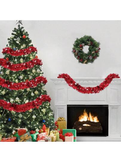 1pc-2m Red Tinsel Garlands Christmas Tree Decorations, Thick Thin Metallic Streamers Xmas Garland Holiday Christmas Decorations Home Indoor Outdoor Party Supplies - Red - View 1