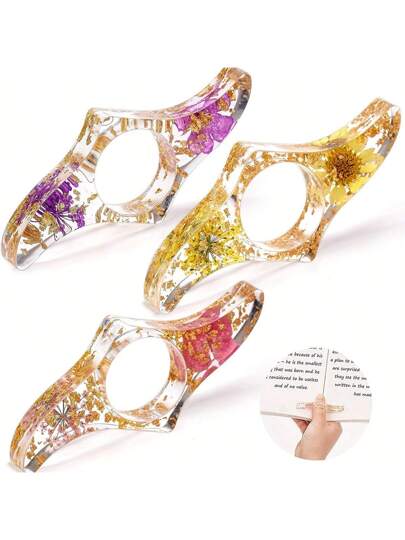 1pc/2pcs/3pcs/6pcs Book Page Holder-Dried Flower Resin Thumb Book Holder-Handmade Resin Holders Light Weight Book Opener Bookmarks Book Reading Accessories For Teachers Book Lovers Back To School - Multicolor - View 3