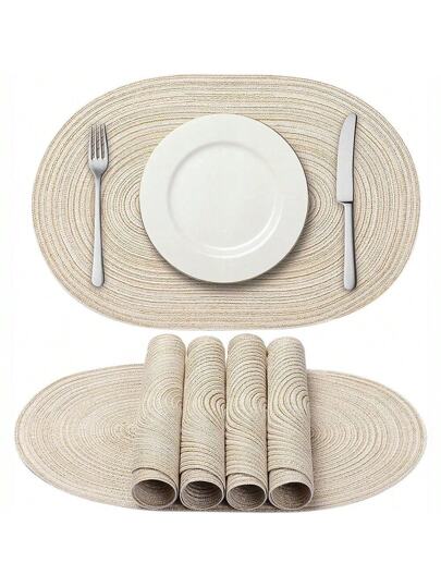 1pc/2pcs/4pcs/6pcs/8pcs 50*35cm Handwoven Placemats, Heatproof Pot Holders, Decorative Cushion Pads, Oval Shape, Bohemian Style, Suitable For Home, Restaurant, Kitchen, Party, Indoor And Outdoor Coffee/Dining/Office Tables - Beige - View 1