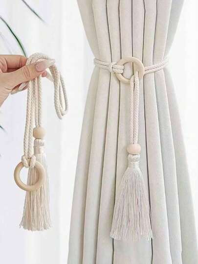 1pc/2pcs Adjustable Curtain Tie Backs, Lightweight Luxury Curtain Ropes, Window Curtain Holders Gifts Birthday Graduation - Ring Beige - View 8