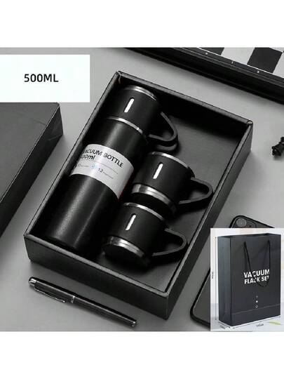 1pc Cup+2pcs Portable 304 Stainless Steel Drinking Cups With Thermal Insulation Function And Coffee & Cold Drink Cup, Gift Set With Gift Box And Bag, Suitable For Housewarming And Friends - Black - View 1