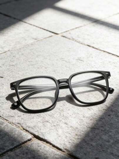 1pc/2pcs Retro Large Frame Plain Glass Rivet Glasses, Personalized Street Style Minimalist Glasses Frame For Men - Clear - View 1