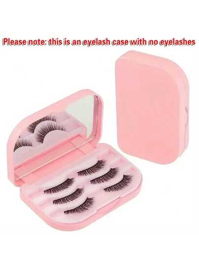1pc 3-Layer False Eyelash Storage Box With Built-In Mirror - Travel Friendly False Eyelash And Cosmetic Tissue Box (Excluding False Eyelashes) - Pink - View 1