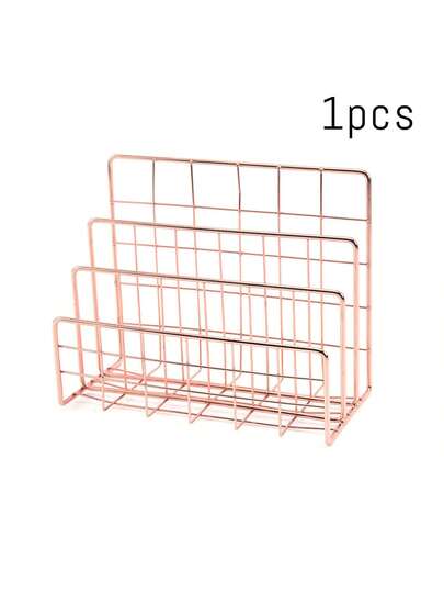 1pc 3-Tier Iron Magazine Rack - Stylish Magazine/Newspaper Organizer With Storage Basket, Suitable For Home Office - Rose Gold - View 1