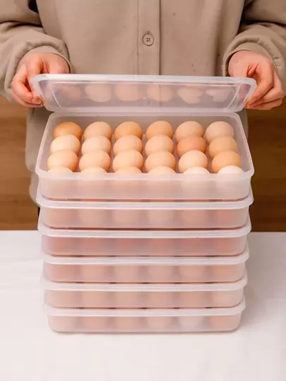SHEIN Basic living 1pc 30 Grid Clear Egg Storage Box, Clear Egg Storage Box Dispenser Plastic Egg Holder For Refrigerator - White - View 1