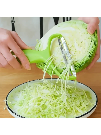 1pc 304 Stainless Steel Cabbage Grater, Kitchen Stainless Steel Peeling Knife, For Purple Cabbage Garden Lettuce, Shredder With Wide Mouth, Multifunctional Vegetable Fruit Peeler Outdoor Home Kitchen, Kitchen Stuff - Green - View 1