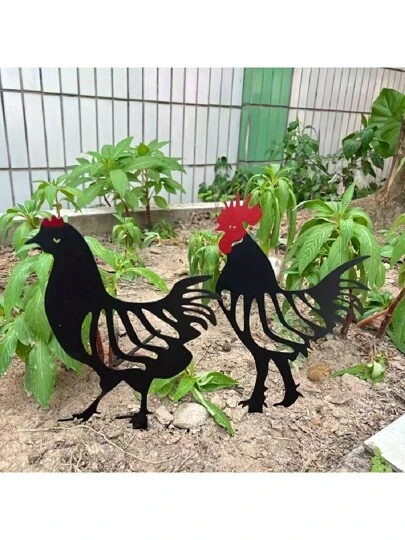 1pc 30cm Long Black Iron Rooster & Hen Garden Stake, Metal Yard Decor For Halloween, Christmas, Garden, Planter, Home Decoration - Multicolor - View 1