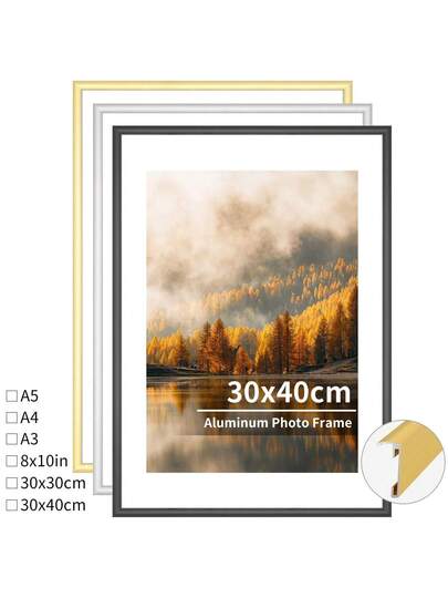 1pc 30x40cm Aluminum Alloy Photo Frame, Metal Frame, A4 Certificate Frame, 8x10 Decorative Frame, Classic Narrow Edge Matte Surface Aluminum Alloy Frame, Gold Poster Frame, Black Home Wall Decor Frame, Suitable As Gift & Artwork Decor, With Stand And Clear Acrylic, Vertical And Horizontal Display - Multicolor - View 1