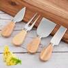 4pcs Stainless Steel Cheese Knife Set With Rubberwood Handles, Pizza, Cheese, Cream Cutting Knives And Spatula