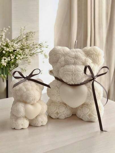 1pc 3D Heart Rose Teddy Bear Silicone Candle Mold - DIY Valentine's Day Romantic Gifts, For Scented Candles Resin Crafts Wedding Home Decor - White - View 1