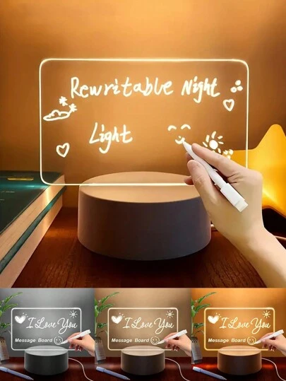 1pc 3d Acrylic Panel Night Light With Switch, 3-Color Led Table Decoration Lamp, Handwriting Message Board With Pen, Tilt Function And Handwriting Illumination Function - Clear - View 1