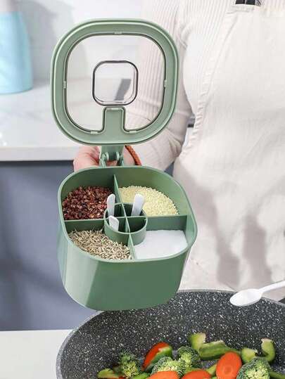 1pc 4-Grid Seasoning Box For Storing Salt, Sugar, Msg, With Moisture-Proof Cover And Random Color - Multicolor - View 5