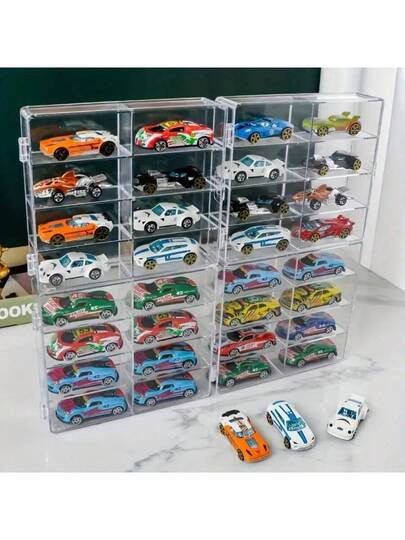 1pc/4pcs Toy Car Model Display Shelf, Transparent Model Storage Shelf, 8-Grid Storage Box Display Cabinet, Car Model Display Box, Can Be Stacked,Valentine's Day Gift,Birthday Gift - Clear - View 1