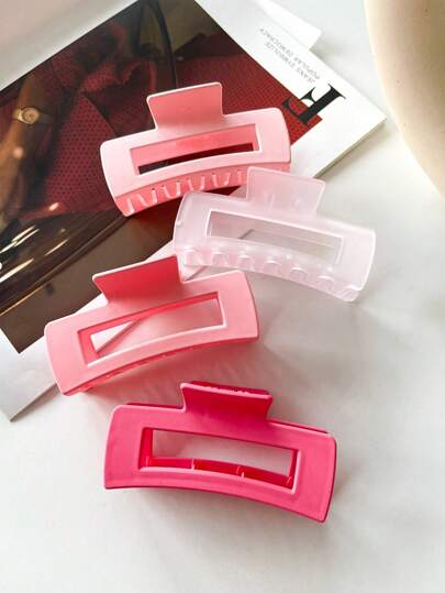 1pc-4pcs Women's Matte Pink Basic Minimalist Style Solid Color Large Plastic Hair Claw Clip, Fashionable All-Match Hair Accessory, Suitable For Daily Wear, Going Out, Washing Face, Bathing, Making Up, Matching Clothes And Accessories, Etc. Casual,School Hair Jaw Clip - Multicolor - View 12