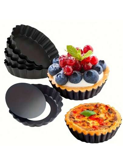 1pc/5pcs/10pcs, Egg Tart Mold, Stainless Steel Round Bottom Cake Mold, Reusable, With Removable Bottom, Suitable For Pie, Baking, Cheese Cake, Dessert - Multicolor - View 1